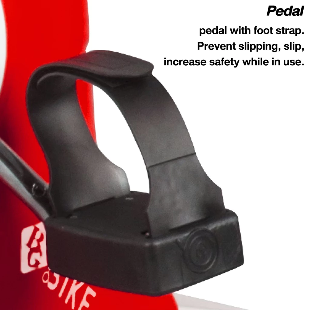 – Large pedal design with safety strap prevents any foot slippage when exercising.